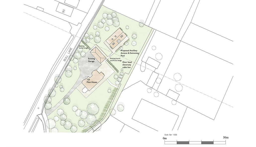 Lander Planning secured consent for a large outbuilding to be used as an annex, gym and swimming pool at a house in Kent.